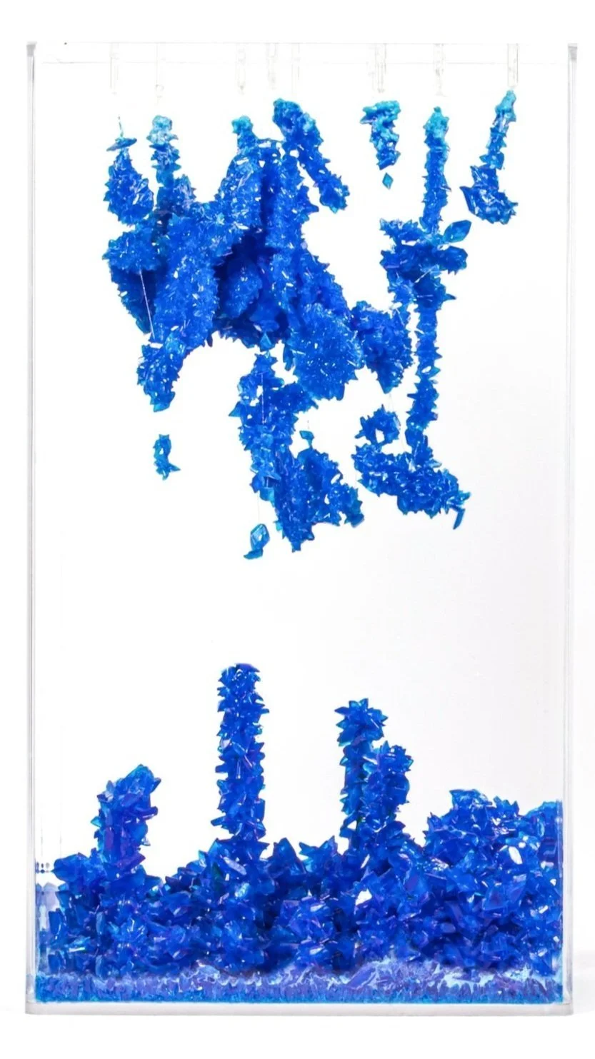 Cristales de sulfato de cobre e hilo de nylon